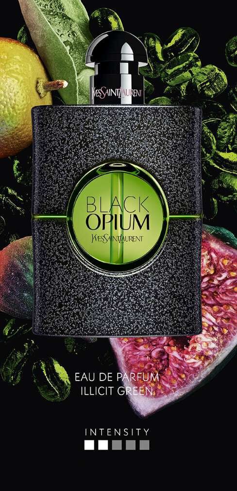Featuring adrenaline-rich black coffee and sensual vanilla. Captivating and energising. Black Opium Eau de Parfum Illicit Green. A zesty take on the Black Opium signature. Green mandarin and creamy fig combine to create this ‘mocktail in a scent’.